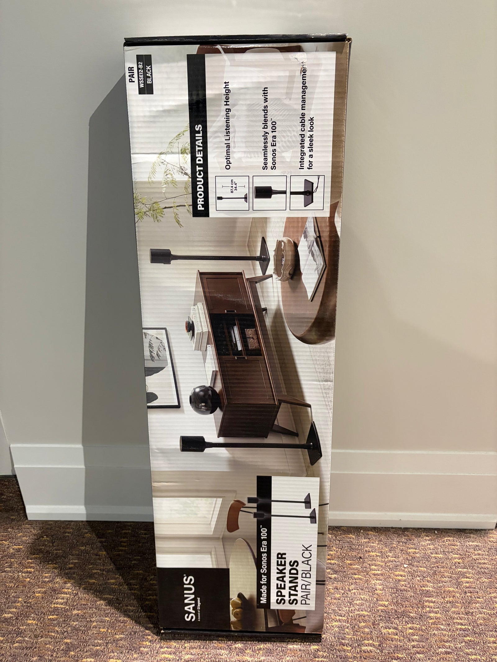 These SANUS Fixed-Height Speaker Stands designed for the Sonos Era 100™ offer the optimal listening height, cable management and sleek design. These stands are sure to deliver optimal audio performance regardless of your listening needs. Constructed of durable steel that not only resists wear, but also perfectly complements the aesthetics of the Sonos Era 100™ for a sleek, seamless look.