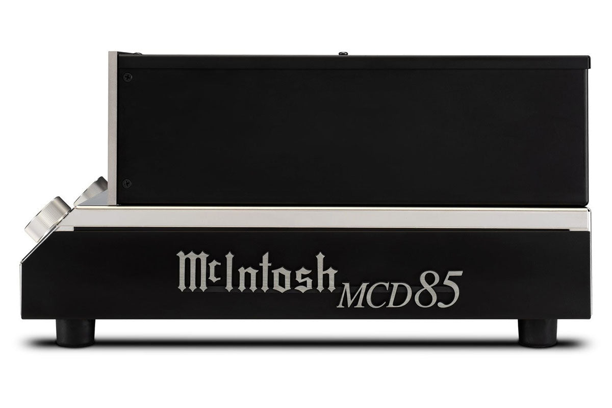 The MCD85 employs 2x read speed, meaning all discs placed in its sturdy die-cast tray are read at higher speeds, allowing their data to be stored in a buffer memory for better error correction and tracking. The tray features a new, custom front beveled nose to match the angle of the chassis and provides smooth and quiet disc handling. Disc reading is performed in the high-quality disc mechanism by a twin laser optical pickup that uses a single objective lens with two laser units, with each employing different wavelengths that are optimized for SACD and CD playback. Power Control and data ports allow for seamless integration with other McIntosh home audio system components.