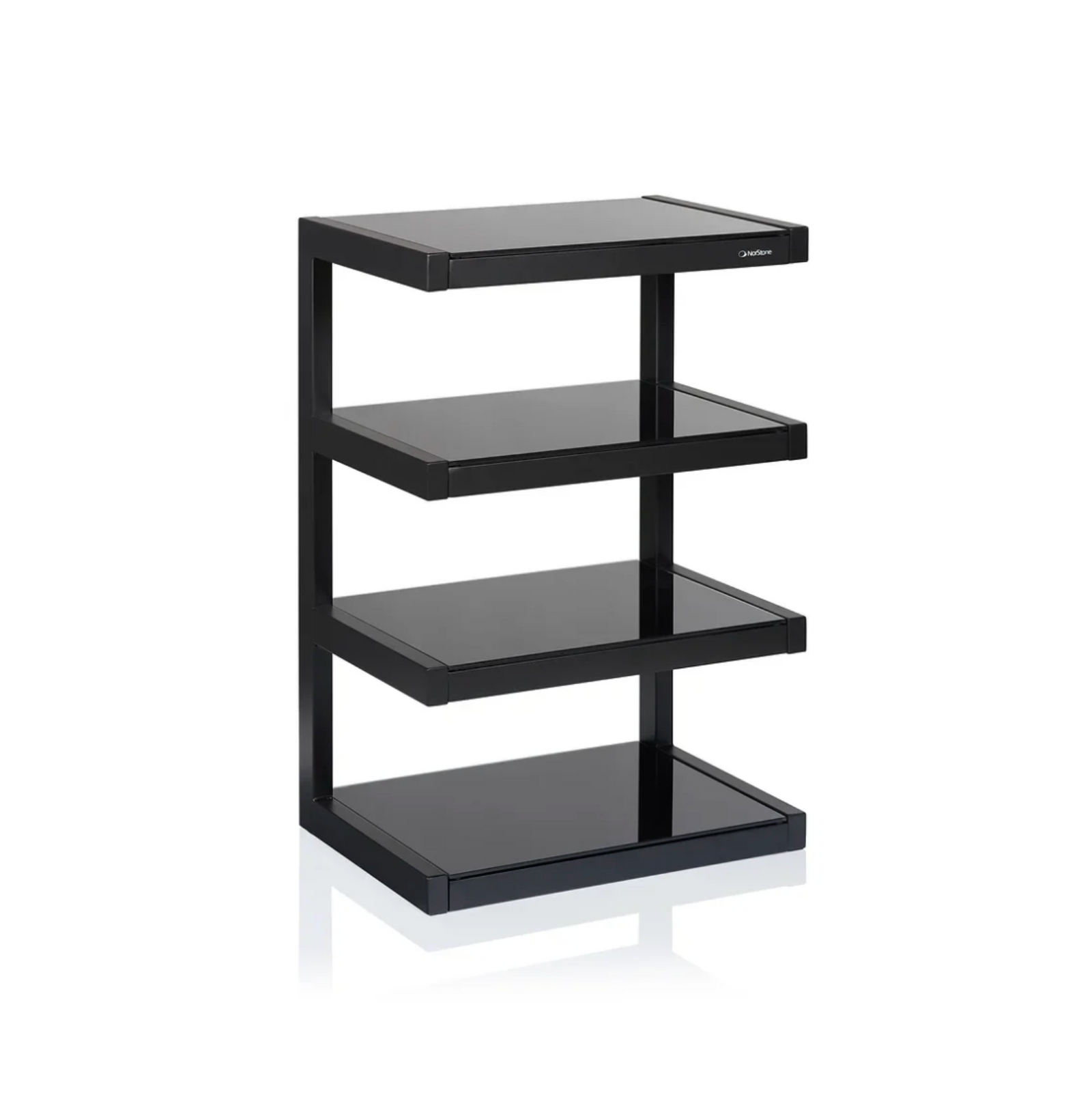 The Esse Hi Fi audio rack can accommodate electronics, vinyl records in its shelves, or use as a TV stand. The top shelf can also accommodate a turntable or a flat screen up to 32".