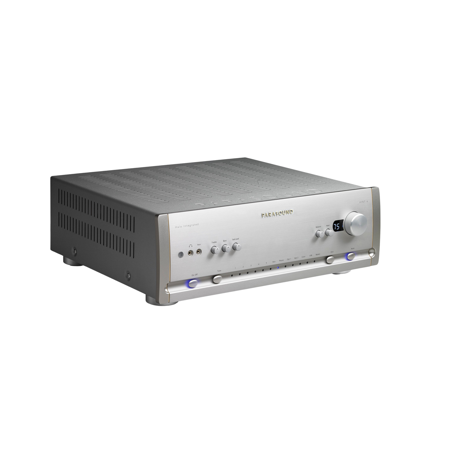 The Parasound HINT 6 is a do‑it‑all integrated amplifier that unites a high‑end ESS Sabre32 DAC, MM/MC phono stage, headphone amp, and 160 W per channel into one elegant chassis. It’s compact yet commanding—equally at home with vinyl, high‑res streaming, or movie night.